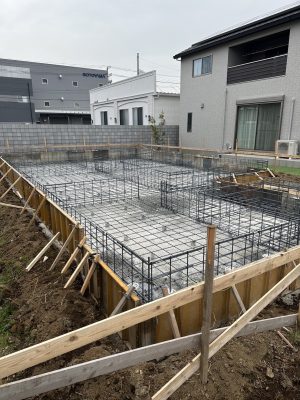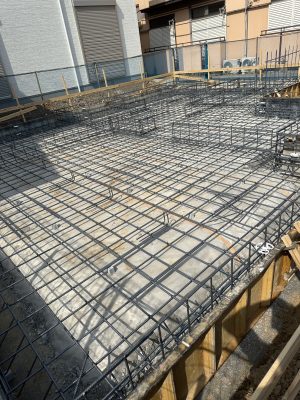 鉄筋工事は、建物の基盤を作る型枠の中に鉄筋を配置し、その上にコンクリートを流し込むことで「隠れた構造」を形成します。